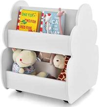 HOMASIS Bibliothèque pour enfant avec 2 compartiments, en bois, avec 4 roues, jolie boîte de rangement pour chambre d'enfant, salle de jeux et maternelle, blanche : Amazon.com.be: Cuisine et maison