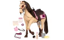 Jeux créatifs avec Morgan : cheval beige/marron de 50 cm avec bride, tapis de selle et mangeoire. Commandez maintenant chez DreamLand.