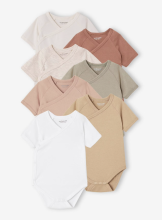 Lot de 7 bodies bébé manches courtes ouverture naissance BASICS - multicolore