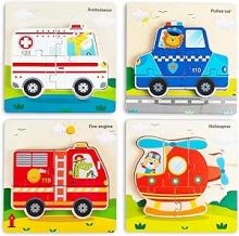 Lot de 4 puzzles en bois 3D, pour enfants à partir de 1, 2, 3 ans, à emboîter, Montessori en bois, jouets éducatifs, cadeau pour garçons et filles de 1, 2, 3 ans, (trafic) : Amazon.com.be: Jouets
