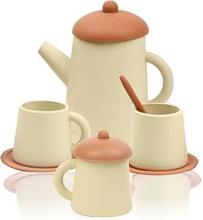 Coriver Service à thé en silicone pour enfants, jouets pour tout-petits, accessoires de cuisine, jouet de jeu pour enfants, garçons et filles, service à thé pour la maison et les voyages (1. Beige) : Amazon.fr: Jeux et Jouets