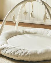 Gimnasio para bebé confeccionado en algodón 100%. De él cuelgan estrellas y luna.