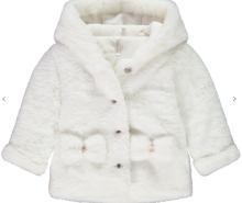Veste rembourrée en sherpa effet fourrure. Forme loose. Coloris uni écru. Capuche. Ouverture boutonnée à l'avant. Boutons coco. Manches longues. Ourlet fixe aux poignets. Deux nœuds décoratifs avec lurex doré sur le devant. Doublure en sherpa. Rembourrage en matière recyclée.