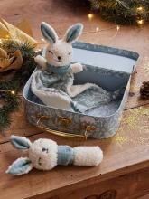 Un doudou tout doux et un hochet amusant, le duo parfait pour accompagner bébé dans ses premiers mois.