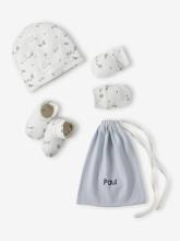 Ensemble naissance bonnet + moufles + chaussons + pochon personnalisable - cappuccino, Bébé