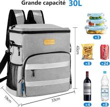 30L Sac à Dos Isotherme à Glacière - Grand Sac a Dos de Pique-Nique Isotherme, Sac Isotherme Portable Cooler Backpack Bag pour Hommes Femmes pour Repas Camping Plage Barbecue(Gris) : Amazon.fr: JardinRufus AI