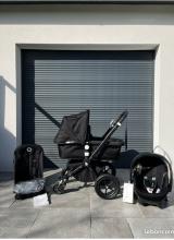 Poussette reversible et nacelle compatibles avec la coque auto grâce à des adaptateurs fournis dans le pack poussette. Fournie avec sa housse de pluie.