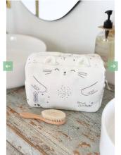 Cette trousse de toilette toute douce en molleton est parfaite pour emmener les affaires nécessaires. Le petit chat va garder bien au chaud les indispensables