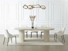 Table à manger extensible 4 à 12 personnes en MDF - Effet travertin beige - L120/180/240 x P120 x H76 cm - Recevez en grand sans compromis avec la table SIDRINA