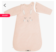 Gigoteuse à manches en velours avec motif lapin brodé devant. Doublure en jersey. Bretelles pressionnées. Ouverture zippée sur le côté. Tog 3.5