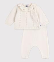 Ensemble 2 pièces bébé en laine et coton avec collerette fleurie MARSHMALLOW A0F1401 | Petit Bateau