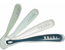 BÉABA - Lot de 4 Cuillères en Silicone Bébé/Enfant 1er Âge - Dès 4 mois, Souple - Bout arrondi - Manche long et Ergonomique, Storm