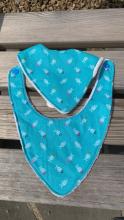 Deux bavoirs style bandana doublés en éponge, avec un joli motif de poissons. Parfaits pour les petites bavouilles. Faits main.
