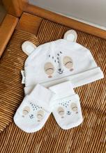 Bonnet bébé et moufles anti-griffures baby panda ecru - Petit Beguin