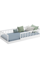 CADANI Timi Montessori 2-in-1 Children's Floor Bed, 90 x 200 cm, Removable Fall Protection, Slatted Base, Solid Pine, White, 3 Mounting Variations, Maximum Load 150 kg, Convertible : Amazon.com.be: Baby Products