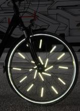 Réflecteurs vélo pour illuminer la nuit ! Munis de catadioptres ils brillent dans la lumière des phares et font des roues de pures spirales lumineuses.