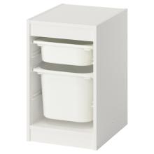 TROFAST combinaison structure + bacs, blanc/blanc, 34x44x56 cm Les enfants ont besoin de rangements spacieux pour leurs affaires. La série TROFAST est composée de caissons en bois, de rangements en filet et de bacs en plastique (min. 50 % recyclés). Facile à tirer vers soi, à transporter et à remettre en place.