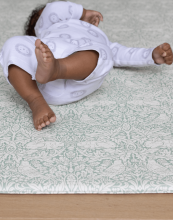 From the anticipated Totter + Tumble x Morris & Co. collaboration, The Brer Rabbit playmat features intricate fauna and florals in limestone white + soft sage.