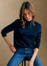 Discover our merino wool sweater with long sleeves, high neckline, and shoulder button placket. A timeless essential to navigate fall and winter with elegance.