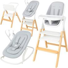 Kinderkraft ENOCK Baby Feeding High Chair, 3 in 1, Natural Wood, Scalable, Adjustable, Nursery, with Tray, Very Solid, Universal Design, with Accessories
