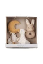 Le coffret de naissance idéal pour souhaiter la bienvenue à bébé en douceur. Il réunit une sélection de premiers jouets tendres, pensés pour éveiller les sens et accompagner les premiers moments de vie. Avec leurs textures douces, leurs formes adaptées aux petites mains et leurs tons naturels, ces compagnons de découverte offrent confort et réconfort. Fabriqué à partir de matériaux nobles, ce coffret élégant conjugue esthétisme, sécurité et plaisir du jeu. Un cadeau précieux, à offrir dès la naissance.