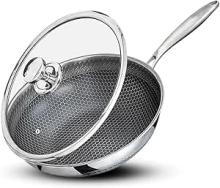 Royal Swiss® Wok 32 cm en Acier Inoxydable Triply – Revêtement Antiadhésif Nid d’Abeille – Compatible Induction, Gaz & Tous Feux – Avec Couvercle en Verre – Cuisson Saine & Durable : Amazon.com.be: Cuisine et maison