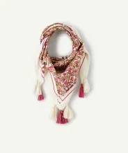 Foulard fille imprimé floral à pompons - whisper white | Tape à l'oeil