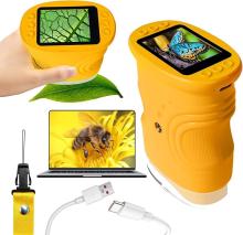 On voulait leur trouver un jeu, kit ou autre pour découvrir la nature, l'observer comme le beau arrive! Florian a flashé sur des jumelles avec écran alors on s'est dit que ce microscope de poche plairait certainement à sa petite soeur pour découvrir elle aussi ce qui l'entoure : feuilles, insectes, fleurs, cailloux, etc.. Chacun son "outils", à s'échanger bien sûr!