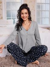 Taille xl CottageSlumber Ensemble pyjama 2 pièces femme, haut en tricot à col V et manches longues avec imprimé floral, et pantalon. Ensemble pyjama boutonné, tenue de détente pour femmes, vêtements d'automne