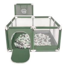 parc bébé avec balles plastiques aire de jeu pliable basket, vert : blanc/gris/menthe, 400 balles