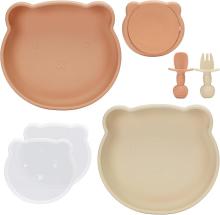 MOJINL Lot de 2 assiettes en silicone pour bébé avec ventouse et couvercle, antidérapantes, avec compartiments, sans BPA, passe au lave-vaisselle, avec cuillère en silicone et fourchette pour bébé : Amazon.fr: Bébé et Puériculture