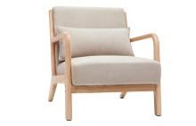 Fauteuil scandinave en tissu effet velours beige et bois clair massif DERRY - Miliboo