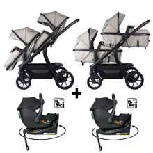 Poussette Novi Baby® Pacific Premium Duo Solid Sand + siège auto Jacky Pro 360 et base, lot de 2