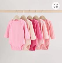 Buy Bright Pink - Lot de 5 bodys côtelés 100% coton manches courtes bébé from Next Belgium