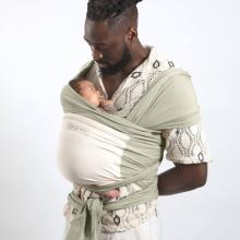 L'écharpe extensible Originale JPMBB est en coton et 5% d'élasthanne. Elle permet de porter bébé facilement grâce au nouage préalable. Coloris vert argile et écru.