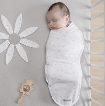 Une couverture à emmailloter toute douce pour apaiser bébé pendant son sommeil. Toute en jersey, elle lui offrira un sentiment de sécurité et de sérénité, qui l'aideront à mieux dormir.