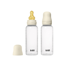 En polypropylène, sans BPA, et avec une tétine souple en latex naturel.