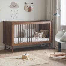 Découvrez le lit évolutif «ROSEAU» avec une élégante finition en noyer. Ce lit polyvalent grandit avec votre enfant, de la naissance à l'âge de 4 ans, parfait pour votre enfant. Doté d'une construction robuste et du design danois emblématique des années 50, c'est un meuble élégant à la collection de chambres de bébé «ROSEAU».