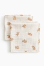 Bavoirs d'épaule en mousseline de coton offrant une bonne respirabilité. Modèle pouvant aussi bien être utilisé comme doudou que pour essuyer les coulures et salissures. Conservez-les à portée de main dans le landau, près de la table à langer ou dans la cuisine. Les lavages successifs accentuent la douceur du tissu.