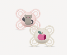 The MAM Perfect pacifier with its unique, extra-thin, flexible teat shape is designed to reduce the risk of misaligned teeth and supports healthy dental development.