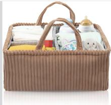 Organiseur de table à langer pour bébé - Panier à langer avec compartiments et poignées - Panier à langer en velours côtelé - Cadeau de fête prénatale (marron foncé)