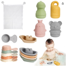 Jeux de bain, Jeux de Bain Bébé Jouets Animaux en Silicone avec Bateaux de Bain Empilables et Cuillère, Jeux Piscine Plage Enfants Jeux d'Eau Enfants 1 2 3 4 Ans
