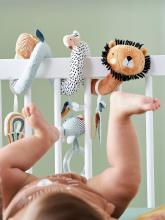 Toujours prête à s'enrouler pour émerveiller les bébés, cette spirale d'activités Tanzanie a plus d'un tour ! En velours tout doux, elle amusera votre enfant grâce à de petits jouets : une feuille, une tortue hochet à billes, un arc-
