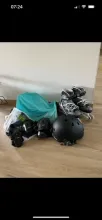 Lot roller fit oxelo - Rollers junior fit 3 décathlon taille évolutif le lot comme sur la photo Ensemble mixte enfant comprenant : Lot de protections XS oxelo Un sac de rangement à lanière turquoise oxelo Un casque noir oxelo 50-54cm Une paire de roller fit 3 junior taille ajustable 35-38 . Le tout utilisé 1 fois puis rangé donc état casi comme neuf … Envoi rapide
