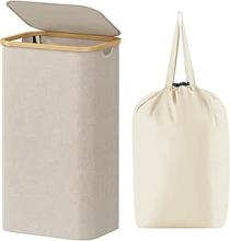 Lifewit Panier pliable de 100 l avec couvercle et poignées en bambou, grand panier à linge pour chambre à coucher et salle de bain : Amazon.com.be: Cuisine et maison