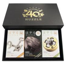 Coffret spécial anniversaire pour les 40 ans d'Eureka avec 3 casse-têtes Huzzle en métal de difficulté différente : le cast Key **, le cast News ***** et le cast Hex ***