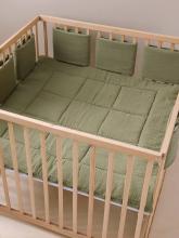 Tour de lit / tour de parc pare-chocs en gaze de coton uni - olive, Puériculture