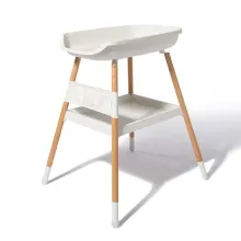 Rebords élevés pour sécuriser le change Réglable sur 4 hauteurs Fournie avec son matelas à langer imperméable Grand plateau de rangement Design en style scandinave, pieds en bois de hêtre