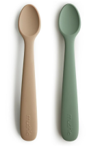 Set de 2 cuillères bébé, 100% silicone, doux pour les gencives. Sans BPA et entièrement sans danger pour les aliments.
