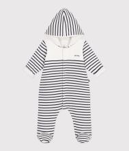 Combinaison bébé ouatinée à capuche et pieds, marinière